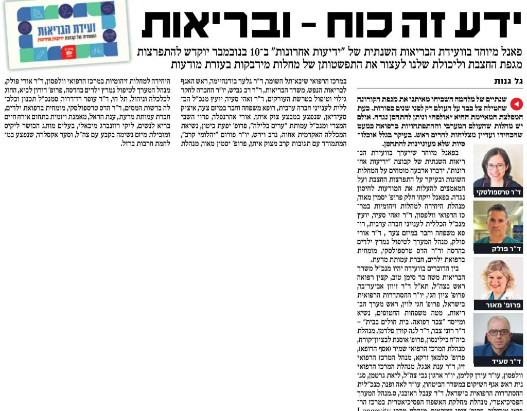 פאנל מיוחד בוועידת הבריאות השנתית של "ידיעות אחרונות" ב-10 בנובמבר יוקדש להתפרצות מגפת החצבת וליכולת שלנו לעצור את התפשטותן של מחלות מידבקות בעזרת מודעות